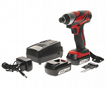 Максимальный крутящий момент 120 Н/м. Напряжение аккумулятора 18 В. Емкость аккумулятора 2 А/ч. Может использоваться как ударная отвертка, дрель и перфоратор. Регулятор скорости, реверсивный переключатель и электрический тормоз. Легкий вес и удобный дизайн корпуса. Конструкция батареи с индикатором питания. Встроенный светодиодный фонарь для работы при низкой освещенности .Два аккумулятора.