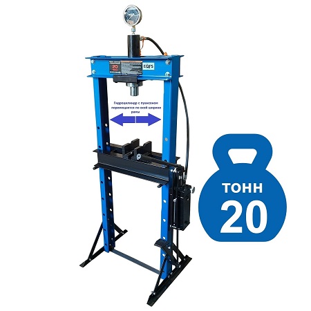 Усилие 20 тонн. Насос — 2 плунжера. Пресс гидравлический. Ручной привод. Гидроцилиндр с пуансоном перемещается по всей ширине рамы. Пуансон 0-145 мм. Рабочее окно 500х1110 мм. Рекомендуется для выпрессовки подшипников, деталей машин, втулок и т.п. в автосервисе. Цвет синий. Доставка по РФ и ТС. Гарантия 12 мес.