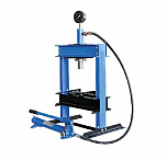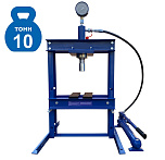 Настольный. Занимает мало места. Основные функции выполняет. Для гаража. Гидравлический, ручной, сборно-разборный. Гидроцилиндр с пуансоном имеет возможность перемещения по всей ширине рамы. Для запрессовки деталей механизмов. Усилие 10 тонн. Интервал пуансона 135 мм. Рабочее окно: 400 x 350 мм.