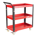 Для размещения и хранения подручного инструмента. Оснащена поворотными прорезиненными колесами размером 4" х 1" (2 колеса оборудованы тормозом). 2 стальные боковые ручки. 3 полки (грузоподъемность каждой полки 40 кг).
