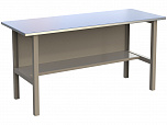 Рабочий стол, размеры: 870х1200х700 мм. Оцинкованная столешница, две опоры, полка. Основания этих изделий изготовлены из листового металла и покрыты порошковой краской. Нагрузка на столешницу 300кг.