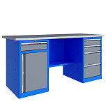 Верстак металлический двухтумбовый 1 тумба - 5 ящиков, 1 тумба с ящиками и  дверью, ц. замок, полка, оцинк. столешн. h=24 мм (фанера+оцинкованный металл 1мм). Размеры (ВхШхГ)    870х1800х700 мм. Вес 115 кг. Нагрузка на столешницу 300кг.