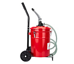 Для ручной раздачи моторного масла, смазочных материалов и трансмиссионного масла на различные механизмы, детали и узлы автомобиля. Бак 20 литров выполнен из высокопрочной стали, и оснащен специальными замками-защелками (исключается потеря масла). Два колеса большого диаметра. Длинный шланг-183 см. ВЕС - 9 кг.