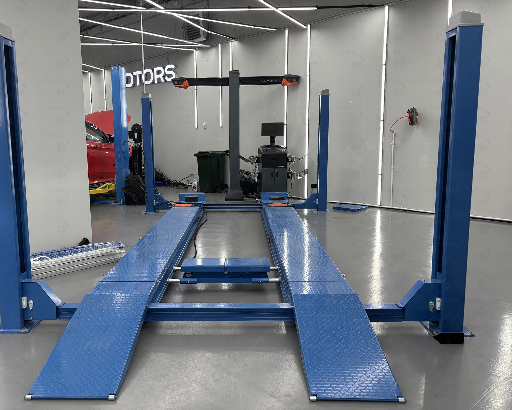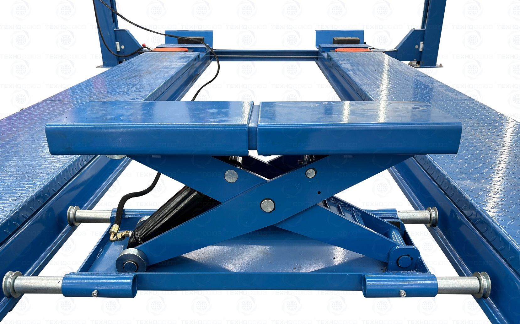Комплект четырехстоечный подъемник для сход-развала ВСЕХ авто. Длина платформ 4850 мм. г/п.-4,0т. Для сход-развала ВСЕХ АВТО!!! В комплекте: Немецкий насос «Bucher hydraulics». Гарантия 2года + траверса 2т. + анкерные болты 16шт. + противооткатные ограничители 2шт. + противооткатные упоры 2шт. Для любых стендов сход-развал - 3D, лазерных, инфракрасных, кордовых. ВАЖНО!!! ДЛИННЫЕ ТРАПЫ -4800мм. — это позволяет прокатывать авто на подъёмнике. Многие стенды развала требуют прокатки!!! Подъём 1800мм, Между колоннами 2910мм. Усиленный — 1280кг металла.