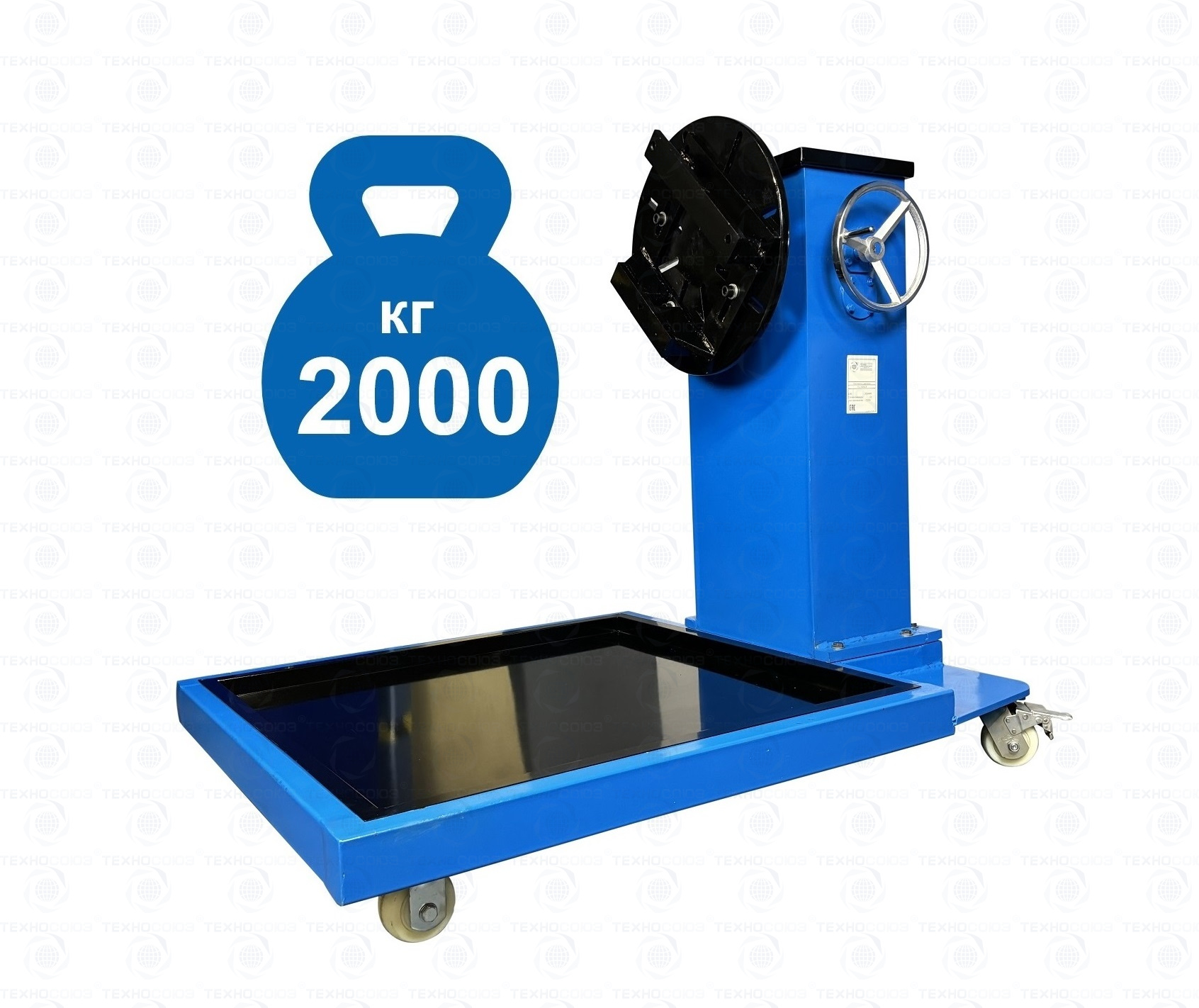 Оснащен редуктором для легкого вращения одной рукой. Редуктор позволяет поворачивать вывешенный двигатель на 360°. Надежная сварная конструкция и 4 колеса обеспечивают маневренность и устойчивость к перевороту. В комплекте поддон для сбора отработанного масла. С универсальным кронштейном для удобства вывешивания и обслуживания ДВС грузовиков. Для сборки/разборки моторов V6, V8 и V12. г/п: 2000 кг.